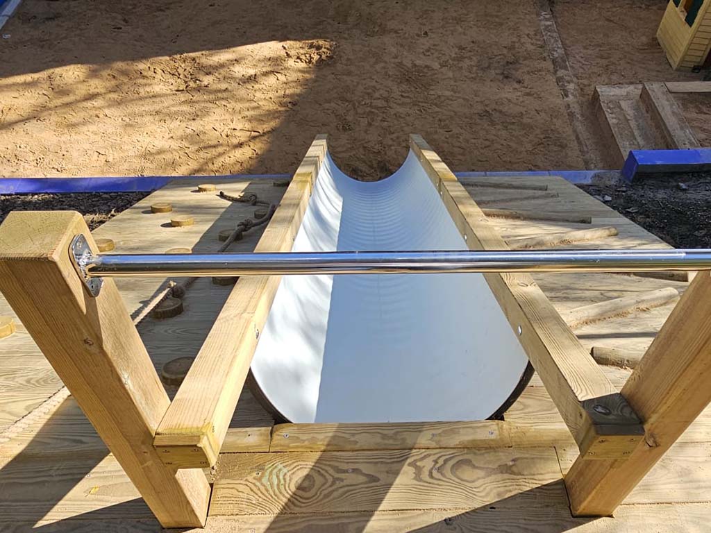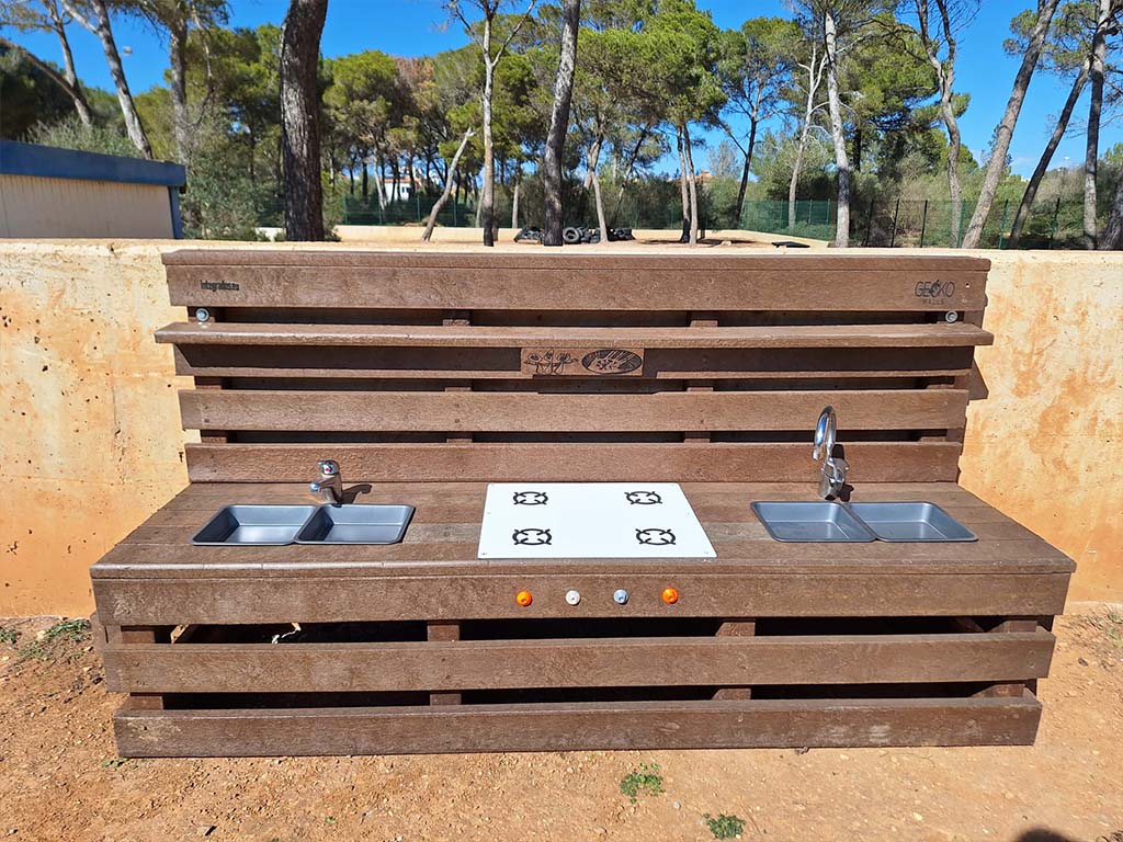 Molts dels nostres elements estan fabricats amb fusta plàstica reciclada: un material ecològic, segur i molt resistent, que no s’estella, no es podreix i té una gran durabilitat.